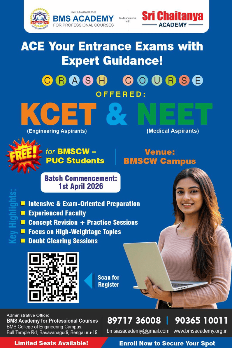 BMS Academy for Professional Courses is a premier institute in Bengaluru dedicated to preparing students for competitive and professional examinations that lead to prestigious careers in administration, management, engineering, medicine, and finance.